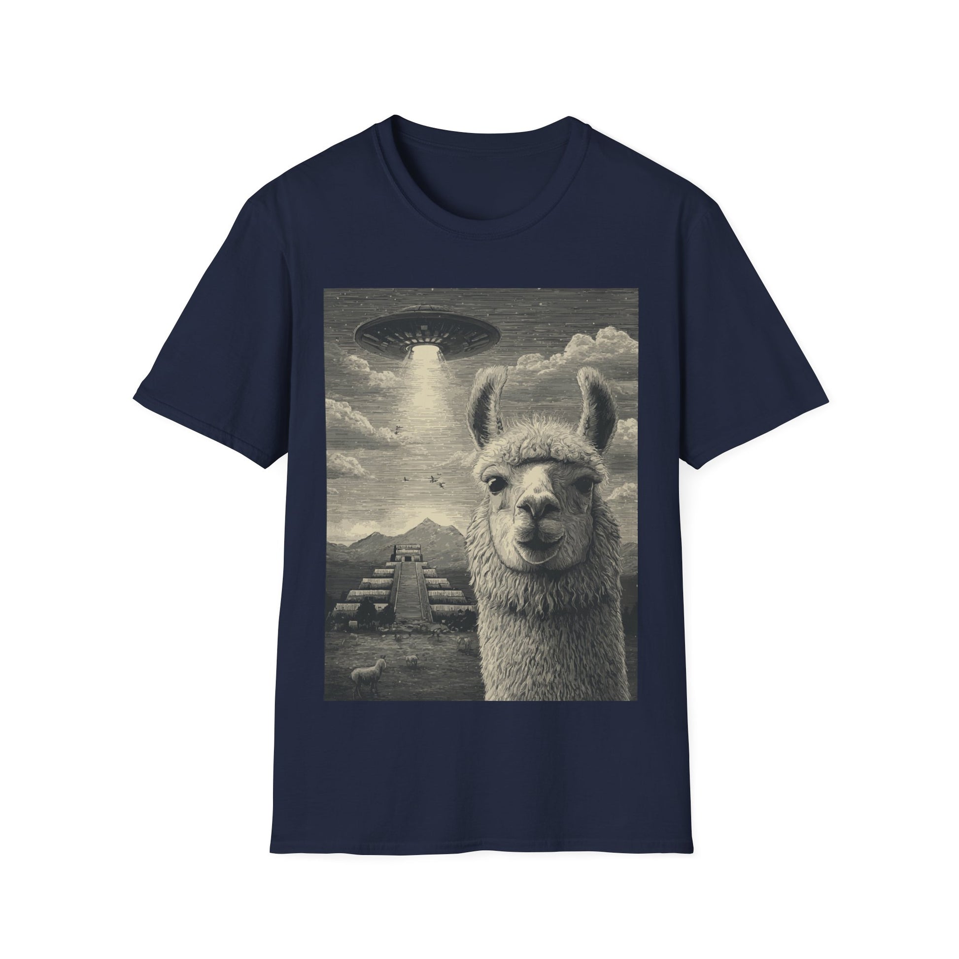 Alpaca, camera-ready. This cheeky alpaca selfie with UFO lands pure meme energy in clean, high-contrast lines—equal parts barnyard charm and “caught in 4K.” Easy to style and impossible to ignore; perfect for animal lovers, jokesters, and anyone who believes the pasture has main-character vibes.