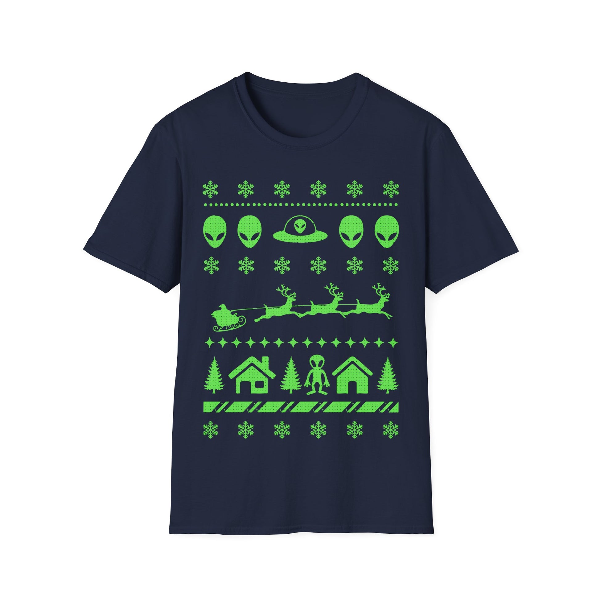A festive close-encounter; clean, high-contrast lines bring a friendly alien into holiday mode for instant party-starter energy. Soft unisex fit that layers perfectly under a flannel for cocoa runs, movie marathons, and Secret Santa chaos. Giftable, cozy, and just mysterious enough to keep the season fun.
