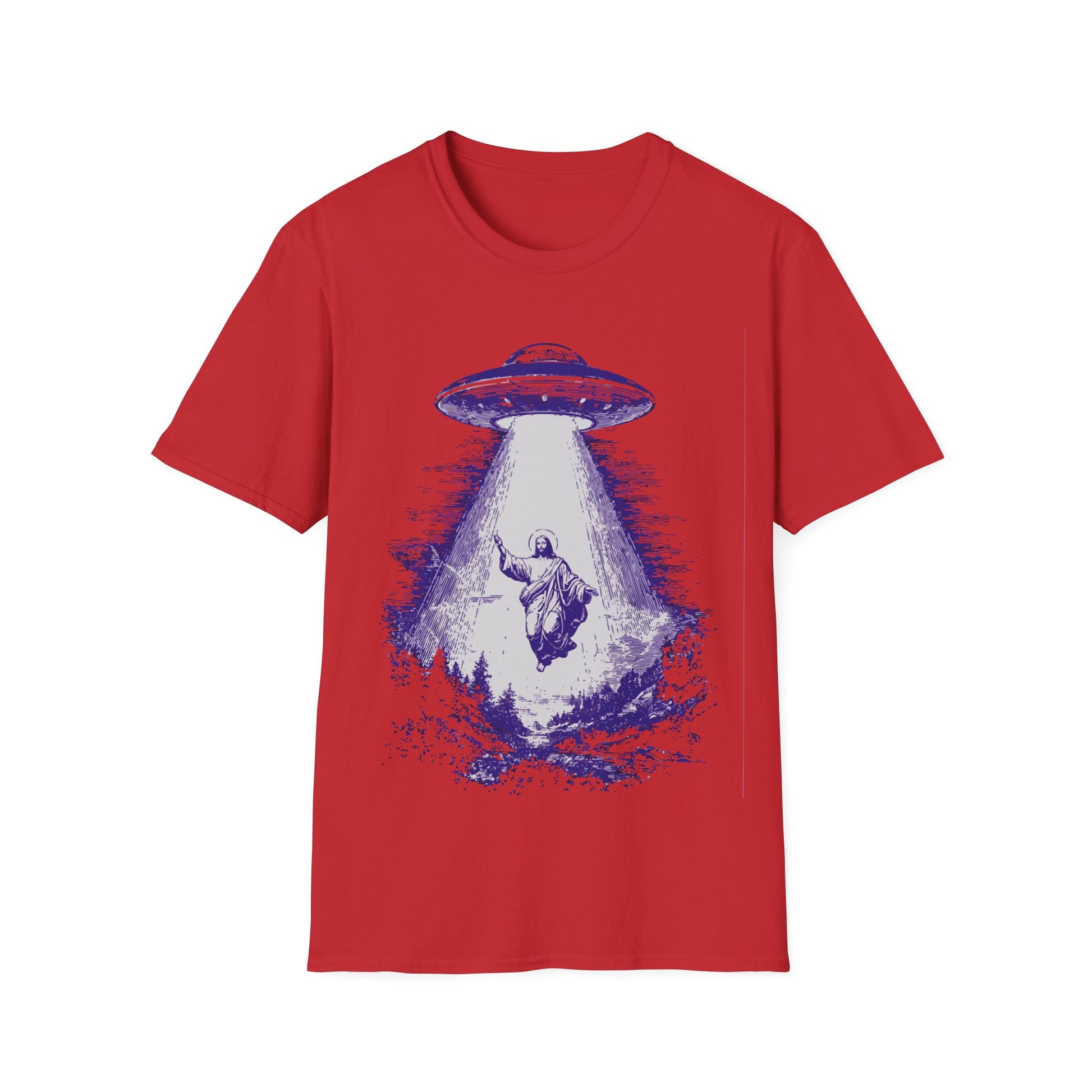 Faith meets flying saucers. “Jesus UFO” blends sacred iconography with classic saucer beams—part divine intervention, part close encounter. Clean, high-contrast art for believers, skeptics, and anyone who loves a reverent wink at miracles, mysteries, and messages from above. Perfect for festival nights, podcast debates, or Sunday scifi.