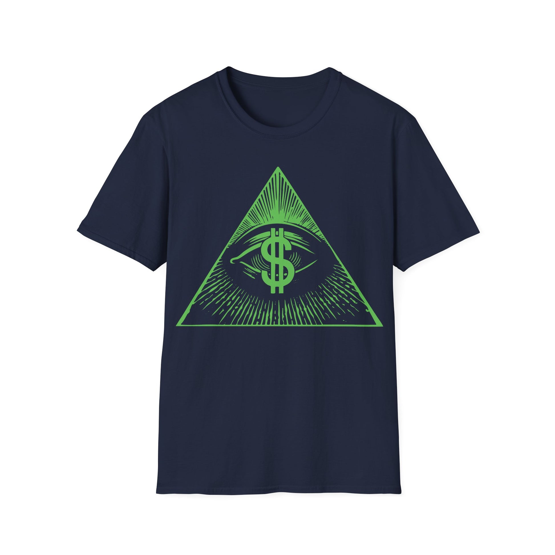 Banknote filigree meets secret-society lore—an all-seeing pyramid framed like currency art, tuned to glow on black. Clean, high-contrast lines for hidden-hand jokes, sacred-geometry fans, and anyone who loves decoding symbols. Perfect for podcast nights, rabbit-hole debates, and cash-register side-eyes.