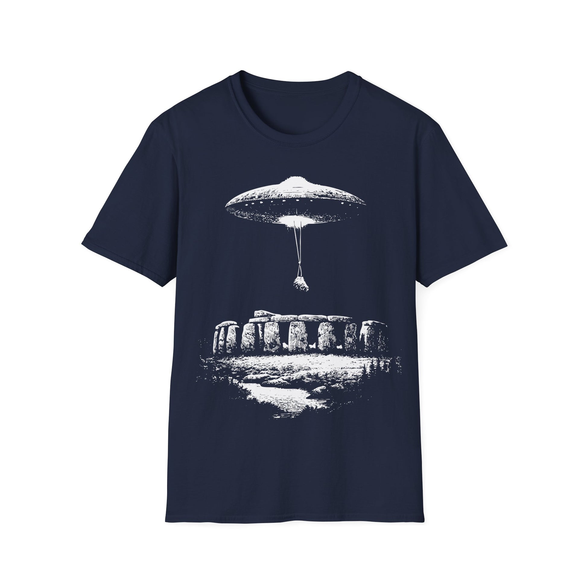 Ancient-astronaut energy, unlocked—a saucer lowers monoliths into place like cosmic Lego. Clean, high-contrast art tuned for dark and light color tees; perfect for megalith nerds, history-buffs-with-questions, and anyone who thinks “prehistoric construction crew” came from the stars. Wear it to museums, night hikes, or your next rabbit-hole debate.